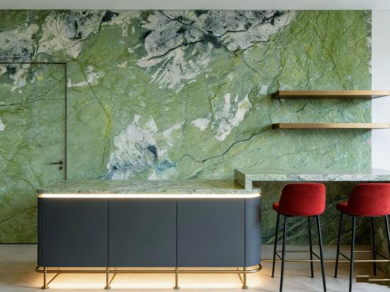 رخام أبل جرين هو حجر طبيعي فاخر، مثالي لإنشاء أسطح عمل راقية في مشاريع الفنادق.