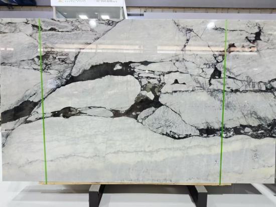 أنسجةها مذهلة وديناميكية: عروق نهائية سوداء، تبدو وكأنها حزن من الثلج أو صور مجردة، تتشابك وتتناقض بشكل درامي مع الخلفية الواضحة، مما يخلق تأثيرًا بصريًا قويًا وشخصيًا. كل واحد هو واحد، يقدم تصميمًا حصريًا لا يمكن تكراره.