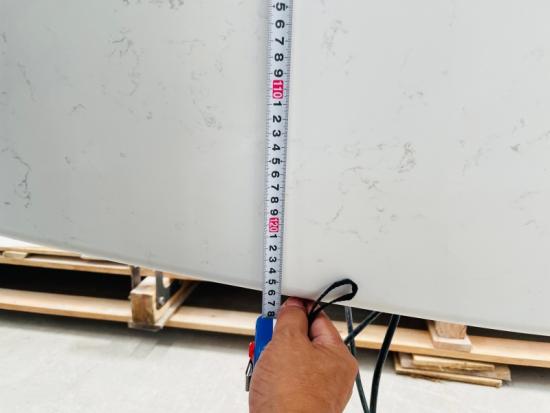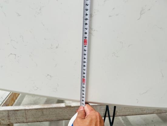 كوارتز كارارا الأبيض الهندسي 3003 متوفر في أحجام 2 سم و 3 سم العادية والضخمة 3000 × 1400 مم / 3200 × 1600 مم / 3500 × 2000 مم، كما تتوفر خيارات مسبقة الصنع لمرونة التصميم والتركيب.