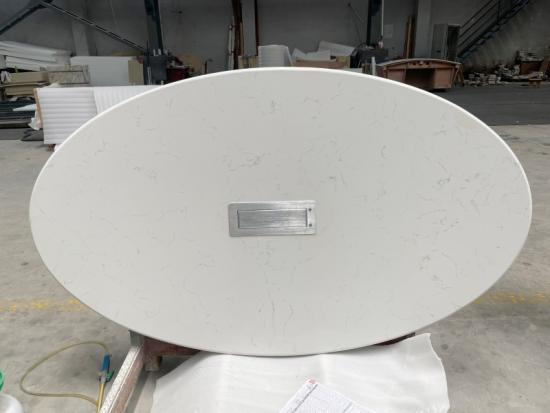 طاولات تجارية منحنية مصممة حسب الطلب من الكوارتز الأبيض كاراراالتالي: