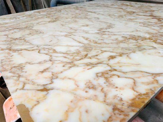 نوفر ألواحًا بجودة مختلفة في صالة عرضنا في شويتو، ونوفر تشطيبات مصقولة ومُصقلة لتناسب اختياركم. تُعزز التشطيبات المصقولة عمقها المضيء، كاشفةً عن توهج مشعّ يتغير مع الضوء، بينما تُضفي التشطيبات المصقولة ملمسًا عضويًا أكثر هدوءًا. كل لوح هو عمل فني فريد، مع تنوع في كثافة العروق وتوزيعها، مما يضمن عدم تشابه أي تركيبين.