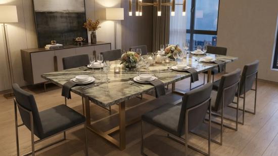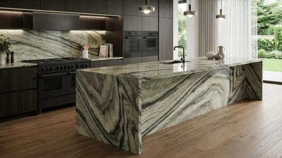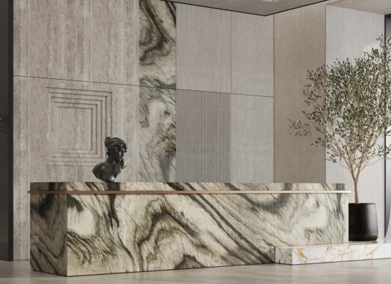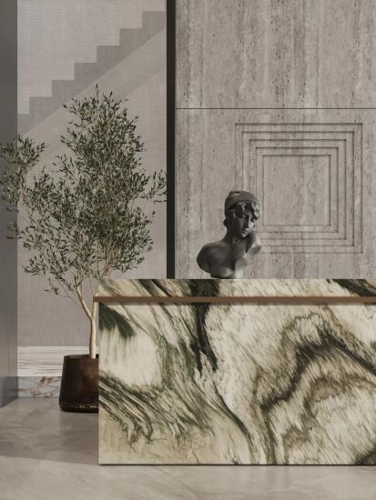 سيبولينو فيردي لوانا الرخام، مع عروقه الخضراء والرمادية والبيضاء التي تشبه الألوان المائية، والأصل الإيطالي الفاخر، يعزز مجموعة من المساحات السكنية والتجارية الراقية: