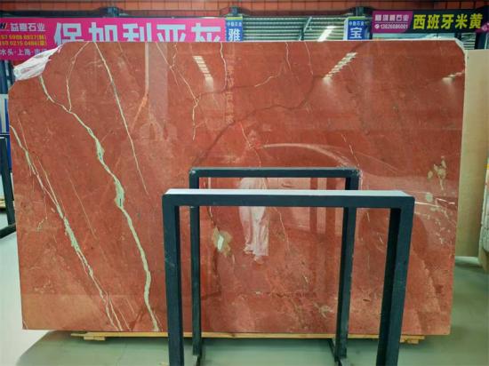 رخام مرجاني أحمر، يُستخرج هذا الرخام الطبيعي الفاخر من إسبانيا، ويتميز بلونه الأحمر المرجاني الدافئ/البني المحمر مع عروق سيليسية بيضاء دقيقة. يتمتع بنسيج ناعم، ولمعان عالٍ، وسهولة في التشكيل، مما يجعله مثالياً لردهات الفنادق الفخمة، والمساكن الراقية، والمكاتب، والمشاريع البارزة. تجنب ملامسته للأحماض؛ فالتلميع المنتظم يحافظ على بريقه وجماله.