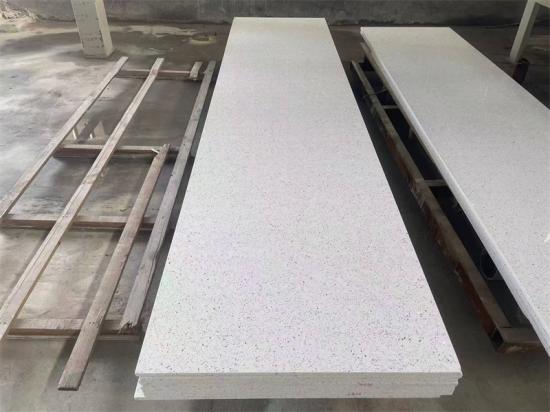 Beyond vanity countertops, it’s widely applied as kitchen countertops, bar tops, and even wall cladding. Its consistent white-speckled pattern suits both modern and minimalist interior styles.
