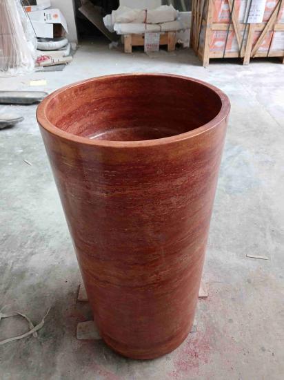 Customized Red Travertine Pedestal Standing Basinقسط:
