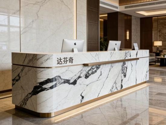 وبغض النظر عن روعتها البصرية، فإن هذا الرخام الأبيض الإيطالي يُعد هذا النوع من المواد مطلوبًا بشدة في مجال التصنيع الراقي. وكما هو موضح في صور مشاريعنا المميزة، فإن تنوعه يسمح بإنشاء تصاميم مذهلة. مكاتب استقبال مصممة حسب الطلب وجزر مطبخ ضخمة. سواء تم تطبيقها على كسوة واسعة من الأرضية إلى السقف أو أثاث مصمم خصيصًا، فإن اللمسة النهائية المصقولة لرخام دافنشي تعكس الضوء بشكل جميل، مما يعزز الحجم المعماري لأي مساحة داخلية حديثة.