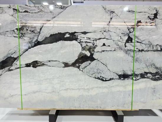 جمالية رخام دافنشي تتميز هذه الأحجار بنقوشها "المتكسرة" أو "المحطمة" الكثيفة. تخلق رواسب المعادن الرمادية والسوداء الداكنة تباينًا قويًا مع القاعدة البيضاء الحليبية، مصحوبة أحيانًا بمناطق بلورية شفافة دقيقة تُضفي عمقًا ملحوظًا على الحجر. هذه الخطوط المعقدة تجعلها خيارًا مثاليًا لـ تركيبات متطابقة ، حيث يتم عكس الألواح لإنشاء جدران مميزة متناظرة وعالية التأثير في الردهات الكبرى والمساكن الفاخرة.