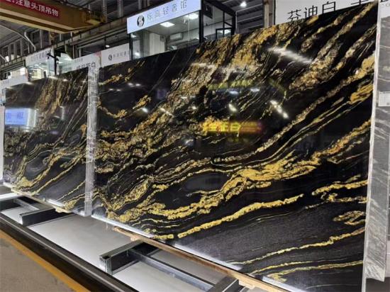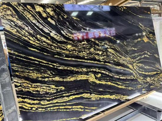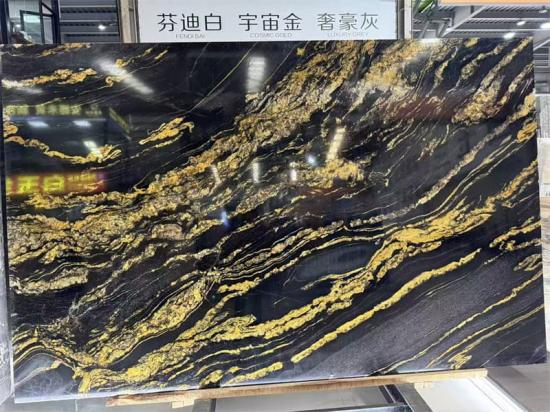 يتألق هذا الجدار كقطعة فنية مميزة في غرف المعيشة الفاخرة، وردهات الفنادق، وغرف نوم الفيلات الخاصة. تخلق العروق الذهبية المتدفقة على خلفية سوداء داكنة إحساسًا بالحركة والفن، ليصبح على الفور نقطة جذب في أي غرفة.