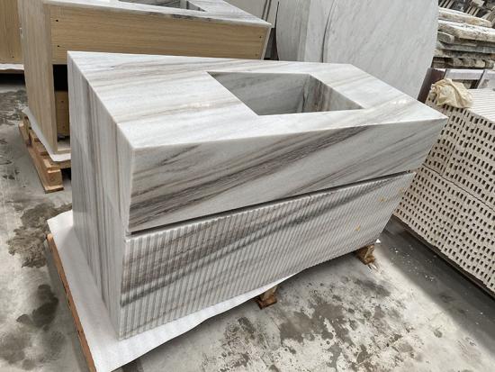حوض غسيل متكامل من رخام باليساندرو الأبيض يوفر هذا المنتج فخامة فائقة، ويحل العيوب الشائعة في أحواض الحمامات التقليدية من خلال هيكل متكامل من قطعة واحدة وأداء حجري ممتاز.